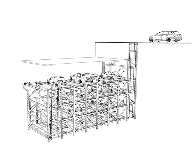 This is an independent and automatic parking system. The system is preferably designed for the Car entry at the TOP i.e the ground floor and parking system BELOW i.e under the ground floor. This system is suitable for a maximum of 40 -44 cars.